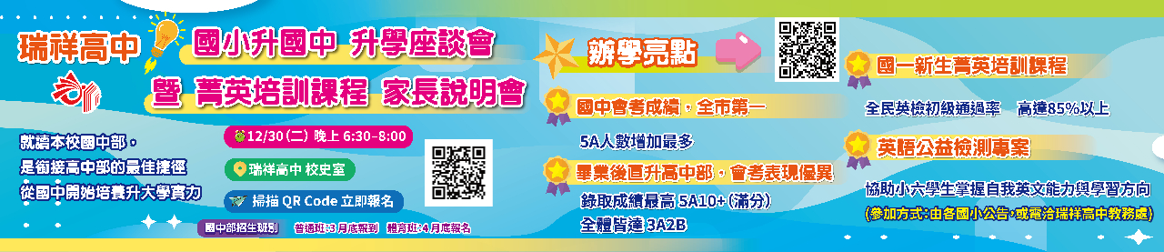 瑞祥高中115學年度「國小升國中升學座談會暨菁英培訓 課程說明會」